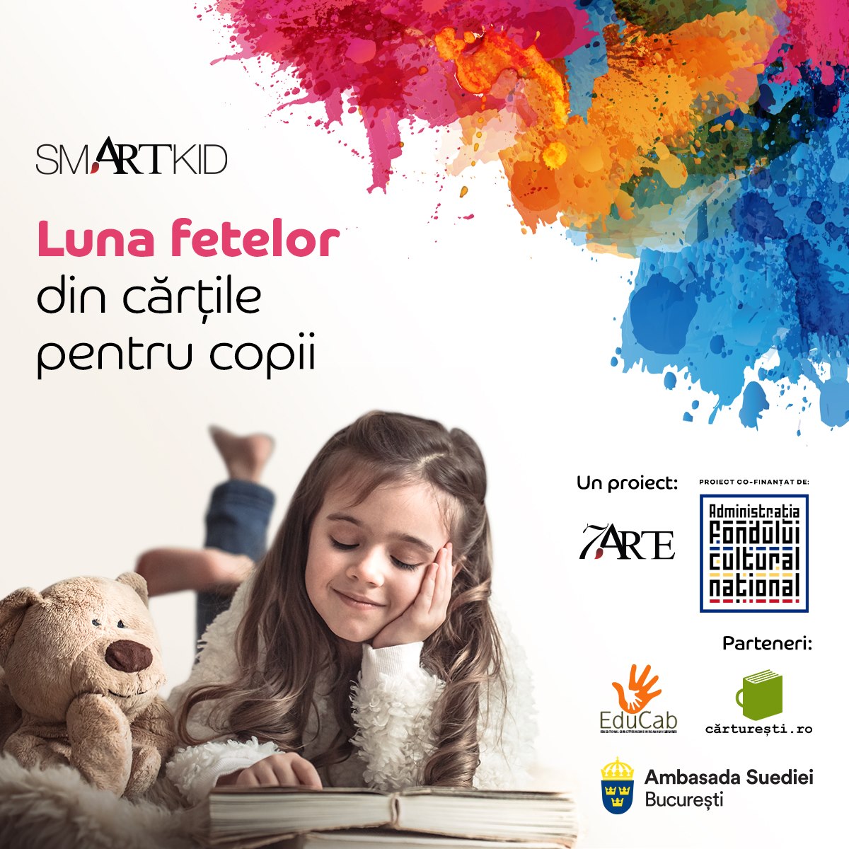 Concret, prin smARTkid, 7 ARTE organizează ateliere creative, educative şi recreative pentru copii şi tineri deschise publicului din medii diverse, urban și rural, cu acces GRATUIT. De asemenea, suntem furnizori pentru gradinițe și școli private din mediul urban, și în acest fel ne susținem proiectele gratuite. Încă de la înfiinţare am oferit concepte unice, precum atelierele de lectură pentru copii cu invitați scriitori şi ilustratori de carte, în spaţii neconvenţionale, concepte care s-au dovedit un model de succes, preluat acum şi de alţi furnizori din piaţă. Acest lucru ne bucură pentru că, pe de o parte ne plasează în postura de inovatori, și pe de altă parte, arată o maturizare a ecosistemului cultural care a preluat modelele care funcționează și pot fi replicate cu succes. Suntem mândri că prin smARTkid am facilitat interacţiunea scriitorilor cu cei mici şi am schimbat mentalitatea în privinţa lansărilor de carte pentru copii. Știm că am reuşit cu ajutorul scriitorilor care au colaborat cu 7 ARTE chiar din primul an de activitate, susţinând viziunea noastra: Ciprian Măceşaru, Carmen Tiderle, Claudia Groza Lazăr, Alexandra Rusu, Mihaela Coșescu și Florin Bican, sunt câteva astfel de exemple. Anual, în luna martie, organizam ateliere în școli, biblioteci si librarii, pentru a celebra Luna Femeii prin lectură. Aducem in fata copiilor povestile unor femei remarcabile, cu biografii reale sau personaje literare, care pot fi considerate modele pentru orice generatie.